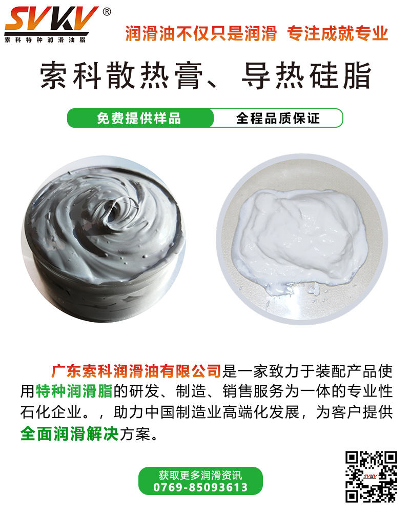 索科SVKV家用電器高導熱硅脂產品性能特點:
