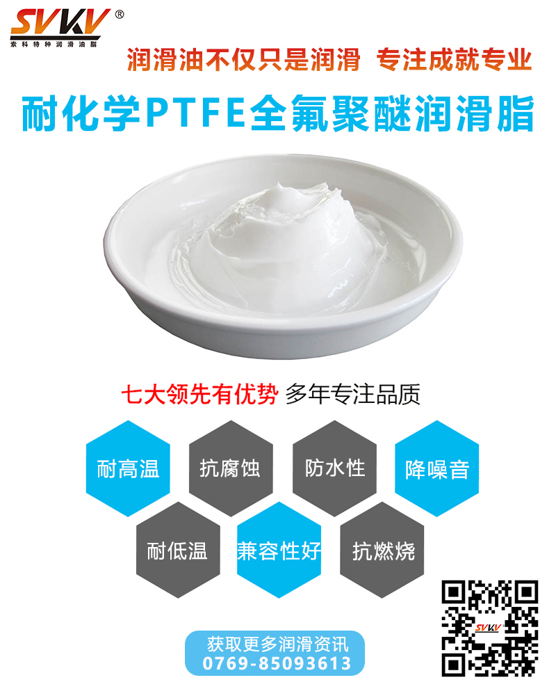 索科SVKV耐化學PTFE全氟聚醚潤滑脂適用于各種活性化學品侵蝕或酸堿腐蝕環境中的機械設備、齒輪、軸承等零部件的潤滑和密封,以及輸送各種腐蝕性氣體的管道閥門的密封潤滑。