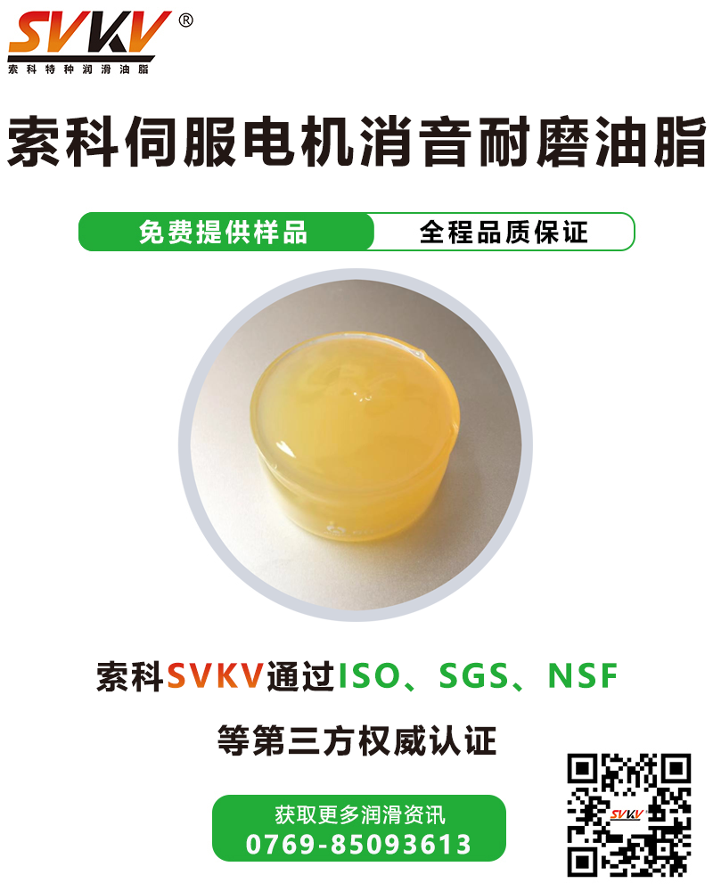 索科SVKV伺服電機消音耐磨油脂選用高性能基礎油,并添加多種高效抗氧化、抗腐蝕添加劑精制而成,是專為伺服電機齒輪消音耐磨潤滑所研發的潤滑油脂。索科SVKV伺服電機消音耐磨油脂能有效減少伺服電機齒輪磨損,降低噪音,延長齒輪使用壽命。