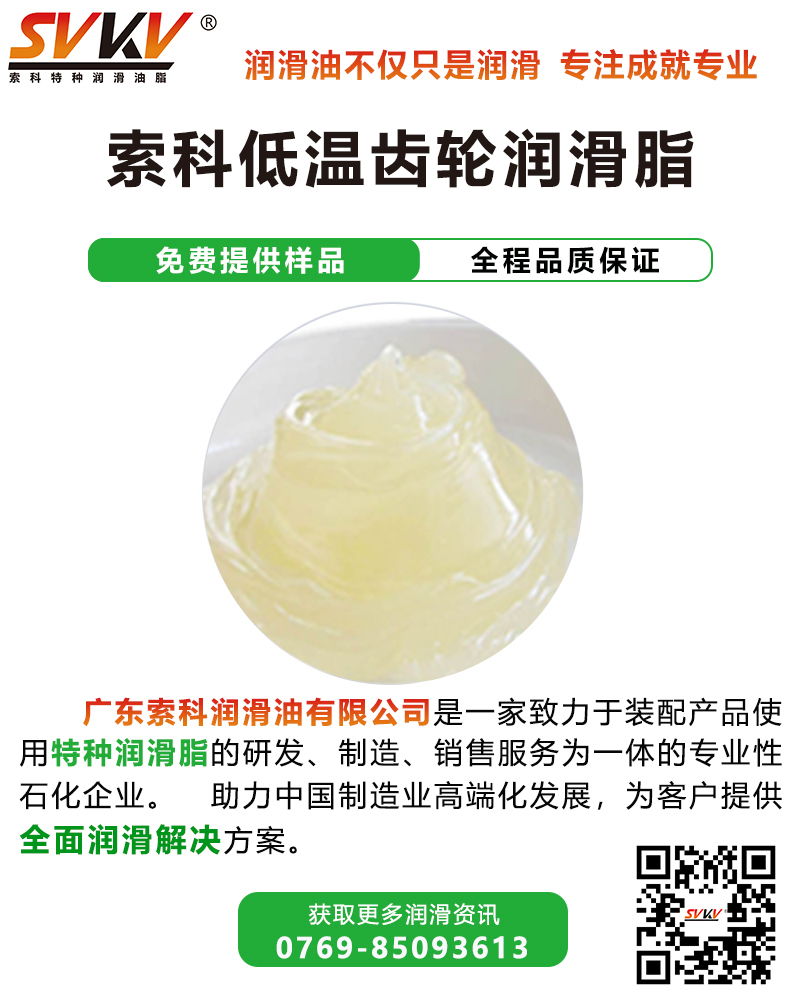 索科SVKV低溫齒輪潤滑脂在低溫零下幾十度的環(huán)境下仍能有效降低軸承、齒輪及設(shè)備的啟動及運行時的扭矩力,是專為嚴(yán)寒地區(qū)設(shè)備軸承等零部件的潤滑而研制的。