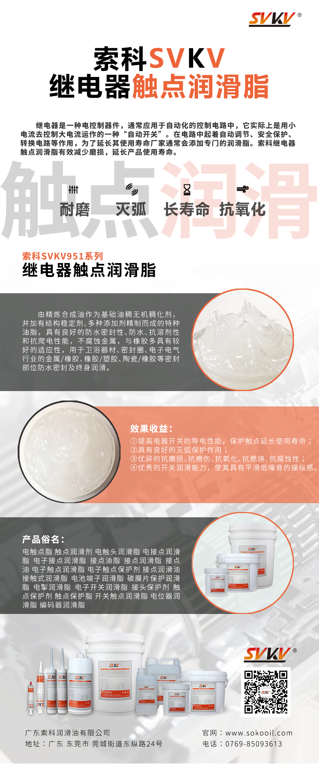 索科為企業提供潤滑方案,降本增效,適合的潤滑脂能有效減少磨損,延長產品壽命。索科提供繼電器觸點潤滑脂0769-85093613免費樣品,全程品質保證!