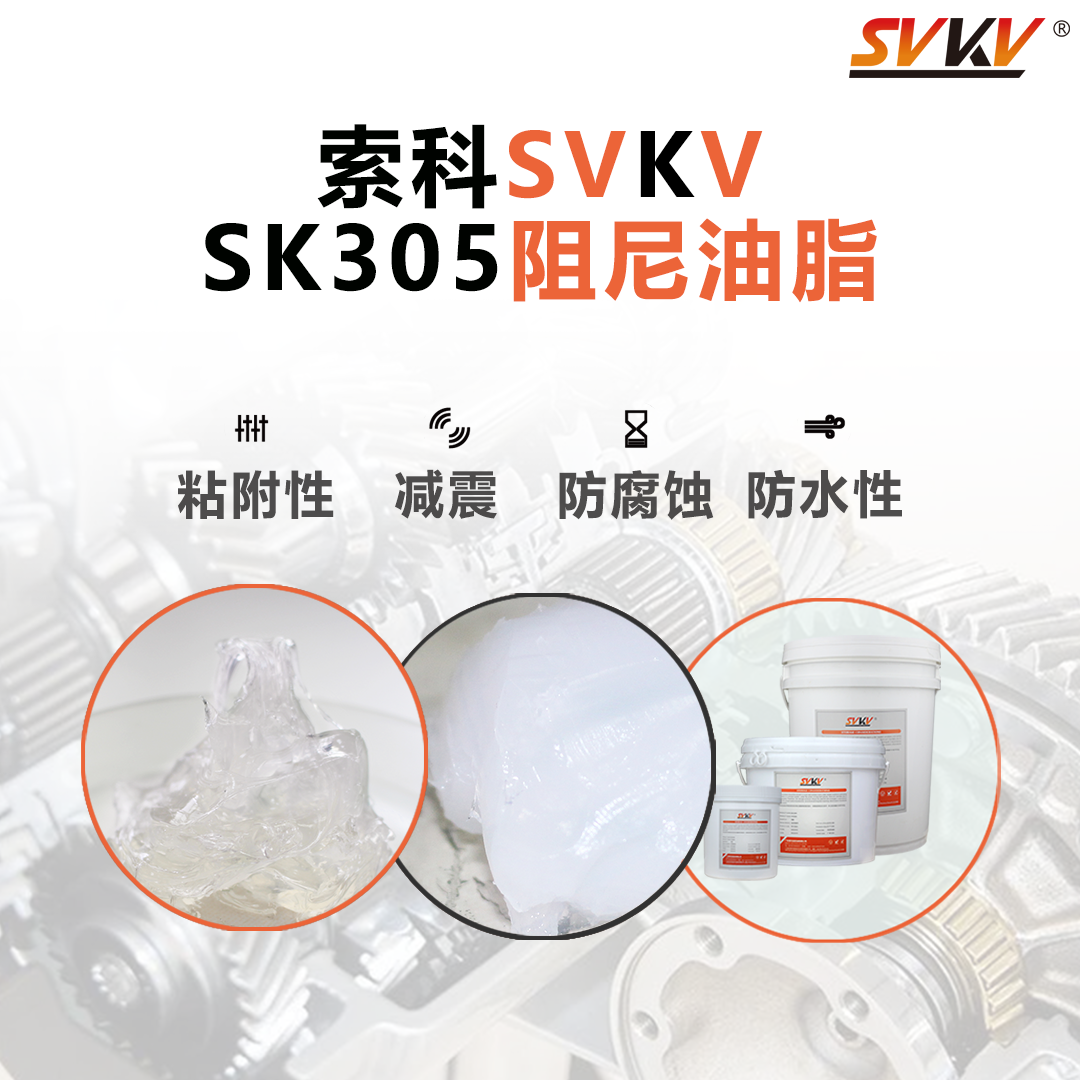 阻尼油脂具有一定的黏度,通常被用于需要緩慢運動或防抖動的地方,具有一定的減震和阻尼效果。電動機:電動機運行時,通常會帶來一定的震動,為了減少震動和噪音,常常需要在電動機軸承中使用阻尼油脂;航空航天器:在一些需要減少空氣力學振動和機械振動的航空航天器部件,如導彈、航天器等中會使用阻尼油脂;電子細節:在一些小型電子產品中,如機器人、相機、手持設備等,經常使用阻尼油脂減少各種震動和噪音的產生;阻尼材料:一些需要有一定的緩沖和吸收沖擊和振動的材料和制品,如聲學材料、隔音材料、減震器等中,通常也會使用阻尼油脂。推薦一款索科SVKV SK305系列阻尼油脂,由高純度無機稠化劑和特殊合成油精制而成的阻尼油脂,無毒,符合歐盟環保要求。